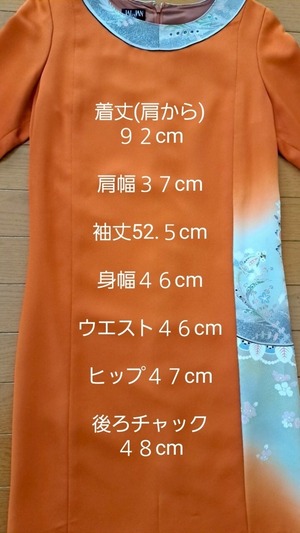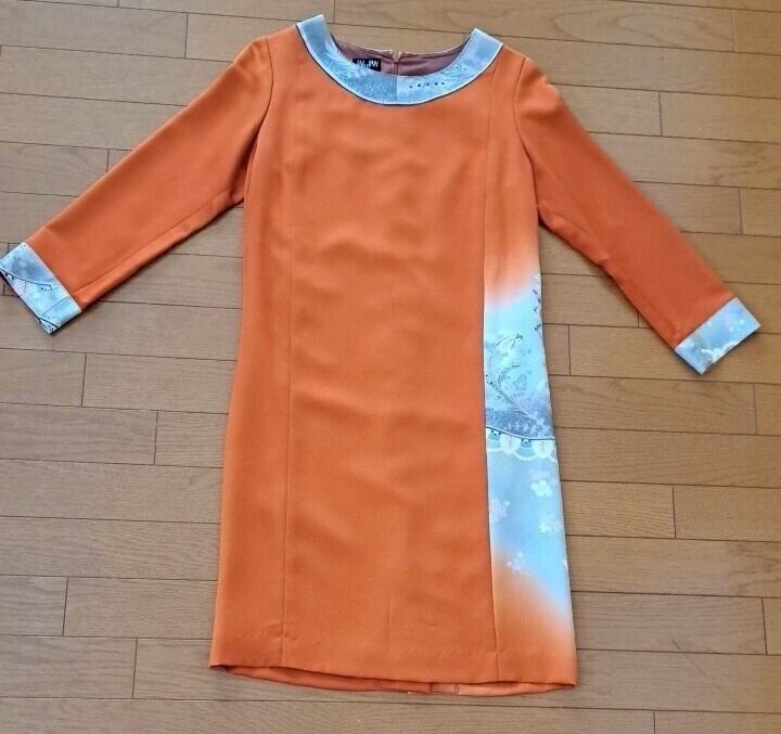 ワンピース 着物リメイク リメイクワンピース 着物ワンピース 100%シルク 正絹 着物 オレンジ フォーマル 7分袖 裏地付き かわいい 大人 20代女性 30代女性 40代女性 50代女性 リメイク商品 女子会 2次回パーティ 婦人会 親族会