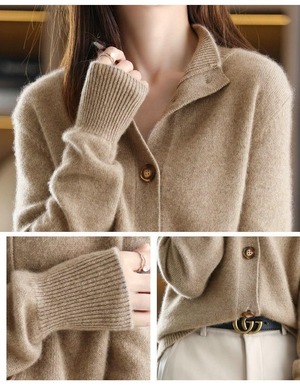ふわふわ素材のニットカーディガン。今年トレンドのブラウンはマストハブアイテム。