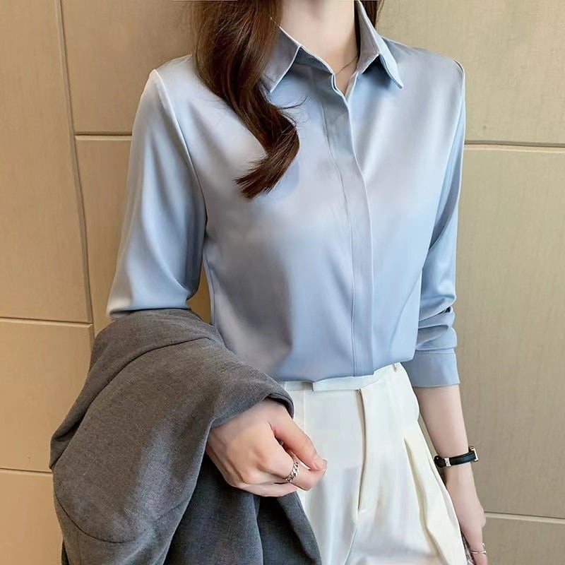 サテン シャツ ブラウス 高級感 ビジネス オフィスカジュアル パーティ 白 ボルドー レッド 赤 グリーン 深緑 水色 ブルー 女子会 フォーマル クール 良素材 asian shrits party formal business white red bordeaux green blue classic beautiful