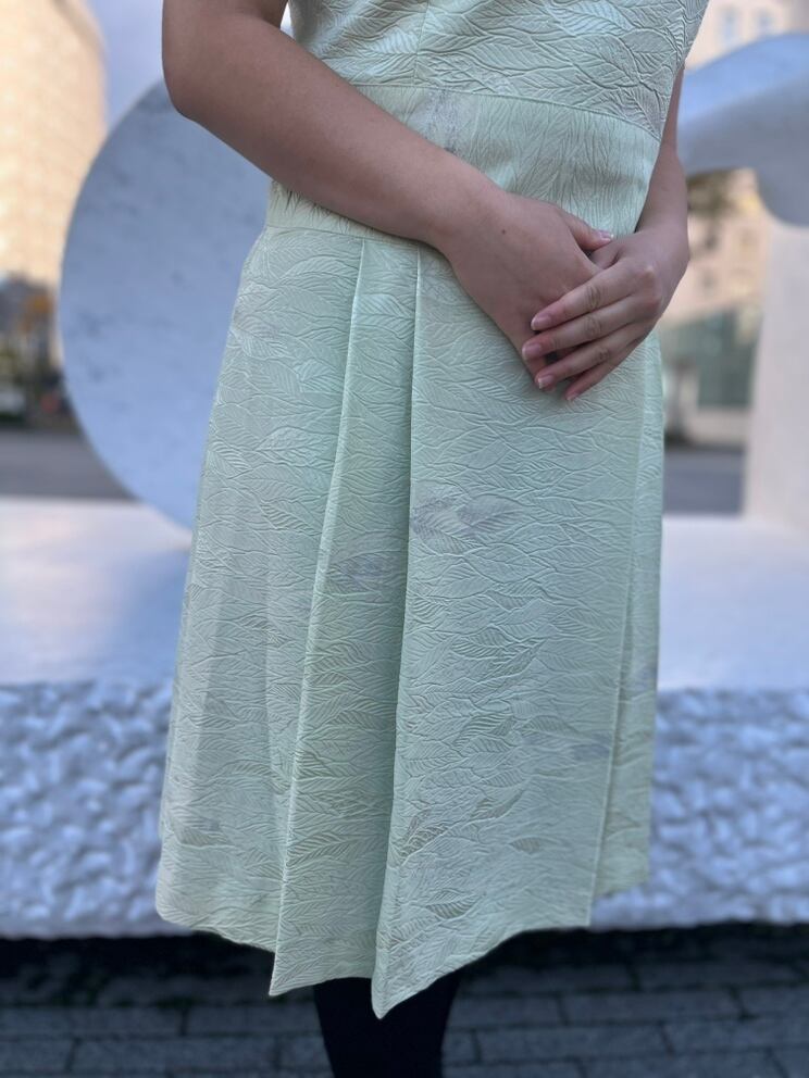 ワンピース 着物リメイク グリーン 緑 パステルグリーン パステル 黄緑 リメイクワンピース 着物ワンピース 100%シルク 絹 正絹 着物 オレンジ フォーマル 7分袖 裏地付き かわいい 大人 女性 レディース 20代 30代 40代 50代 リメイク商品 女子会 2次回パーティ 婦人会 親族会