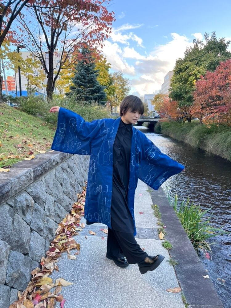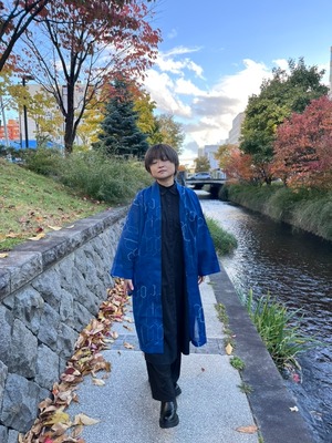 羽織 着物リメイク 青 1点もの 重ね着 アレンジ マント フリーサイズ 大きめサイズ ビビッド ワンポイント 派手 ダンス衣装 よさこい