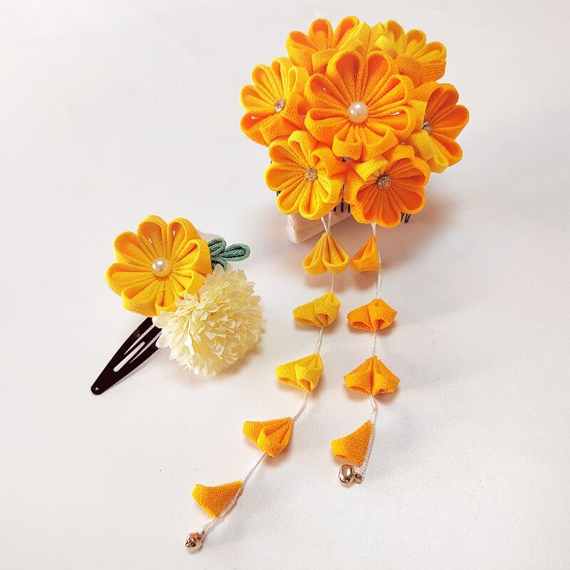 ヘアクリップ型 ヘアピン型 髪飾り セット 和風 結婚式 パーティ オレンジ ちりめん 上品 着物 ファッション 着物に合う 大正ロマン レトロ かんざし かわいい セクシー 結婚式 2次回 お見合い 和装 衣装 ダンス衣装 decoration japanese traditional hair hair decor gourgeous kimono recommendation japan YaBoW