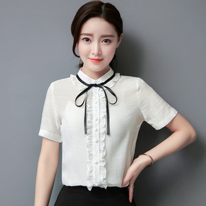 リボンがアクセントの半袖シャツ。