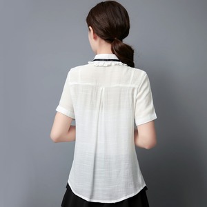半袖シャツ コットン 綿 大きいサイズ 秋 春 夏 白 ピンク 5分袖 10代 20代 30代 40代 プチプラ 涼しい 白シャツ 体型カバー ゆったり ナチュラル