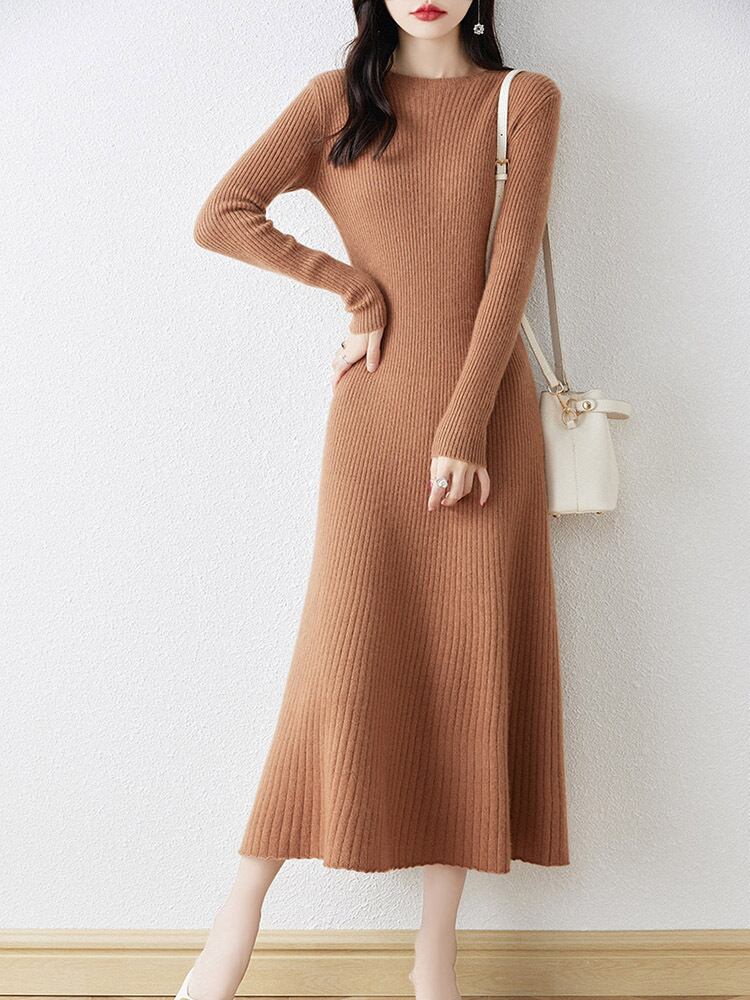 ニット ロングワンピース ハイネック タートルネック スリット ゆったり ゆるカジ 体型カバー 長袖 春 秋 冬 赤 ベージュ キャメル 茶ガーリー 大人可愛い デート シンプル 可愛い オシャレ 秋物 冬物 カジュアル 新作 無地 通勤 通学 [rrn-v0076]