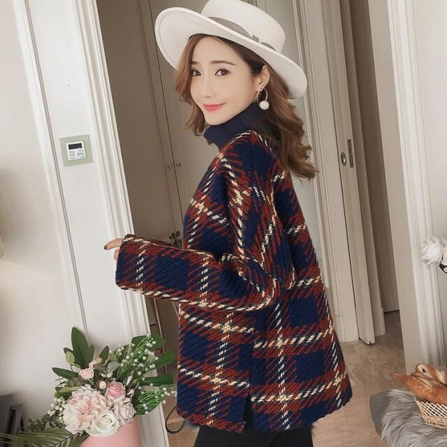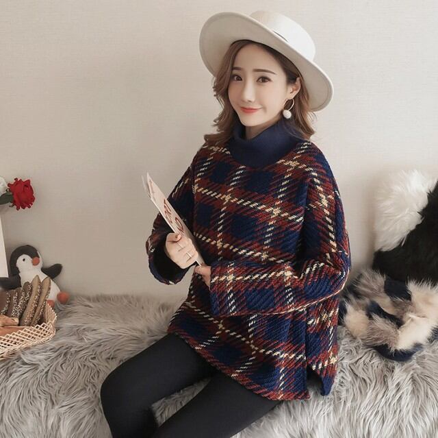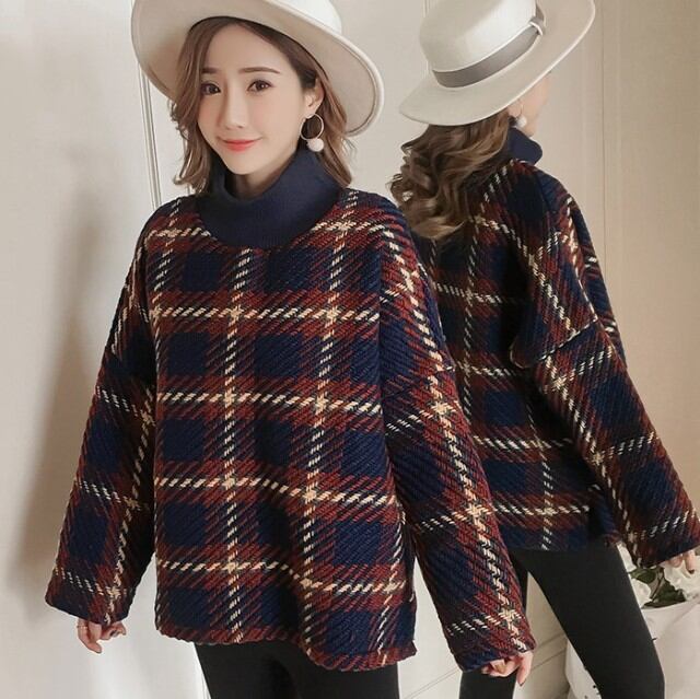 チェック柄 ウールトップス レディース トップス ウール タートルネック 長袖 チェック プルオーバー セーター 秋 冬 新作 [A00157]