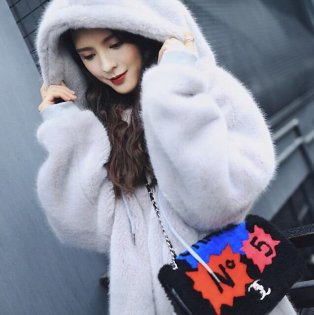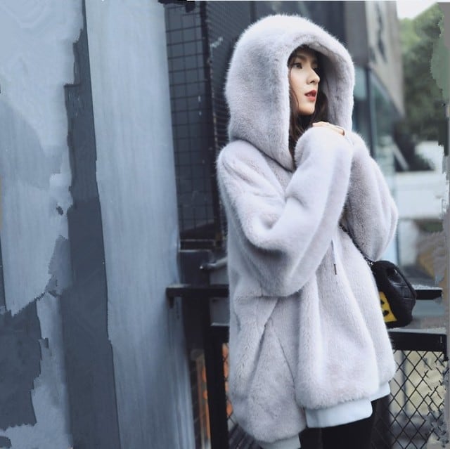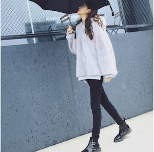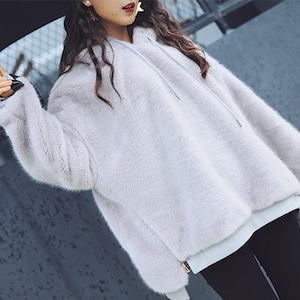 フェイクファー パーカー レディース トップス トレーナー 長袖 フード付き モコモコ ビッグシルエット 可愛い グレー 冬 新作 [A00208]