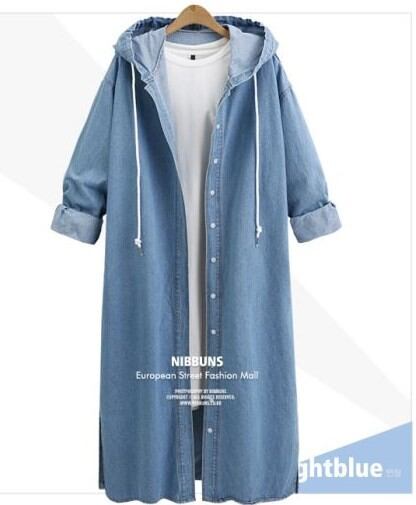 デニム ジャケット レディース アウター ロング 長袖 フード付き コットン オシャレ 可愛い ダークブルー ライトブルー 全2色 秋 [A00219]