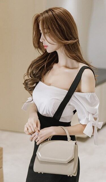 レディース シャツ オフショルダー 半袖 袖リボン ホワイト 白 無地 セクシー 夏 [A00241]