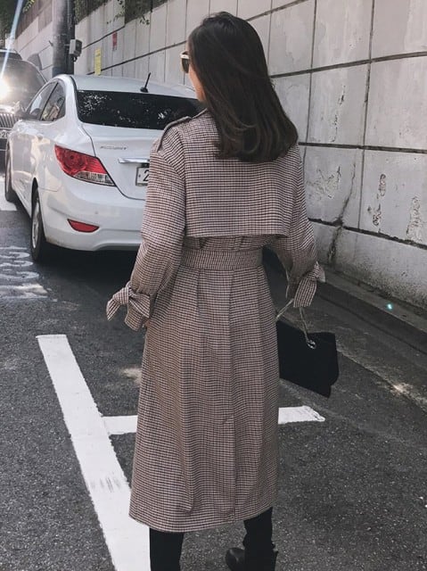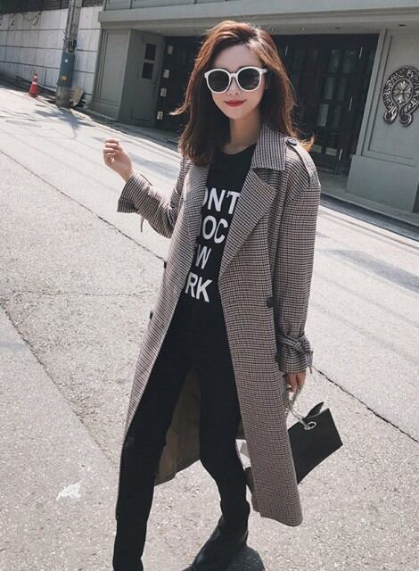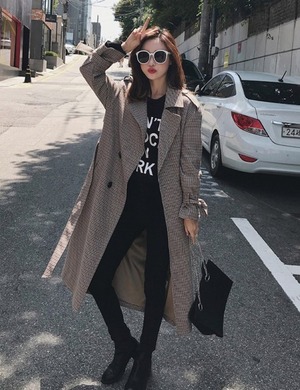 チェック柄 トレンチコート レディース アウター ロング コート ロングトレンチ シンプル チェック オシャレ 可愛い 秋 新作 [A00243]