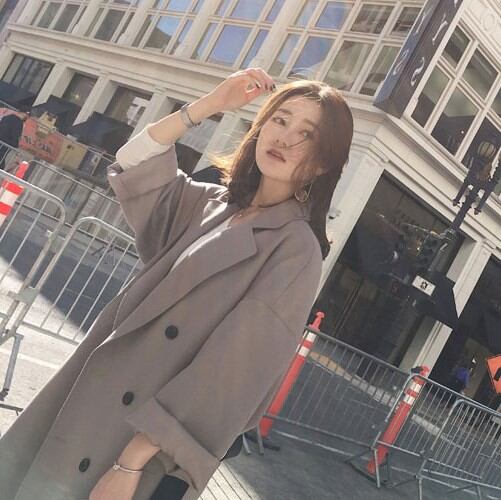 ロング トレンチコート レディース バイカラー ブラックベルト アウター コート グレージュ アーミーグリーン 全2色 秋 新作 [A00255]