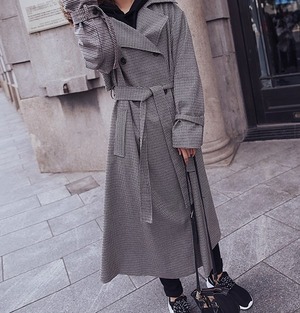 チェック柄 トレンチコート レディース アウター ロング コート ロングトレンチ チェック オシャレ 可愛い グレー 秋 新作 [A00269]