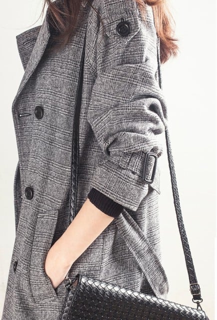 グレンチェック トレンチコート レディース アウター コート チェック柄 膝丈 シンプル きれいめ 大人可愛い グレー 秋 新作 [A00287]