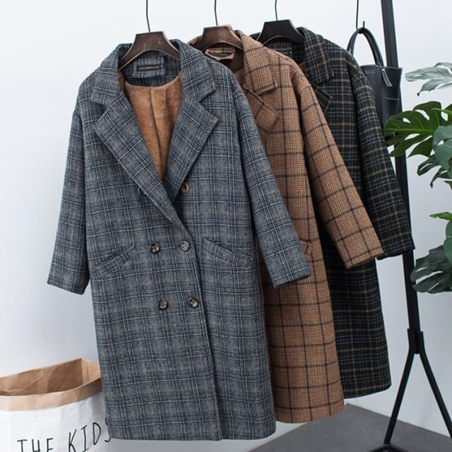 チェック柄 チェスターコート 裏ボア レディース アウター コート ロング丈 チェック ブラウン グリーン グレー 全3色 冬 新作 [A00360]
