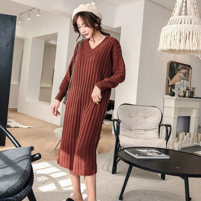 ニットワンピース リブニット レディース ワンピース ロング丈 ロングワンピース ワインレッド イエロー 黒 全3色 秋 冬 新作 [A00383]