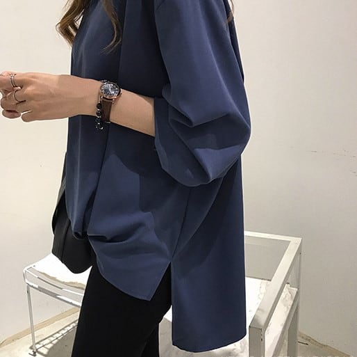 スキッパーシャツ レディース トップス ブラウス シャツ 長袖 大きいサイズあり ブルー ホワイト グリーン 全3色 秋 冬 新作 [A00387]