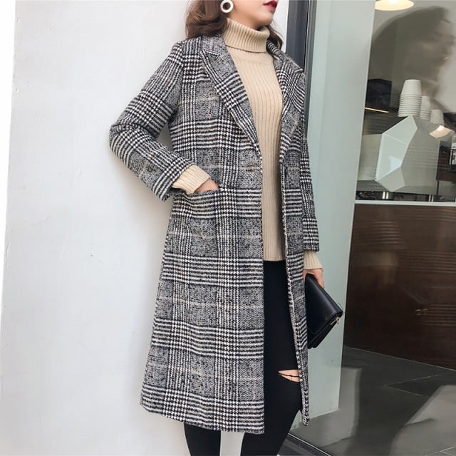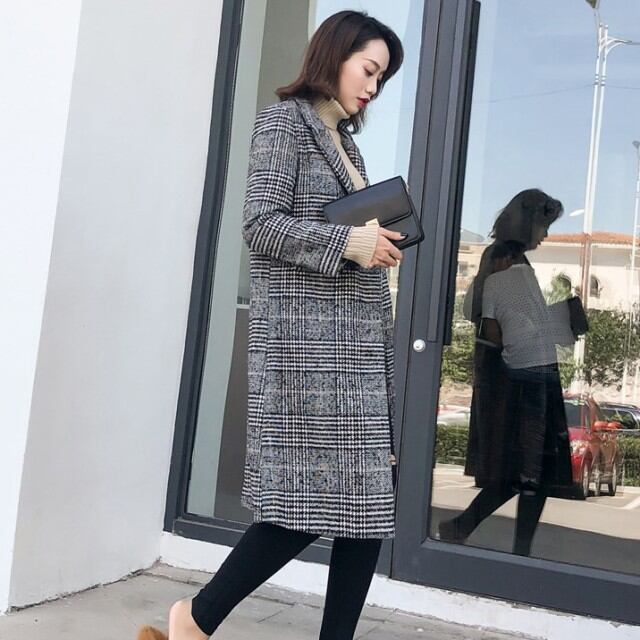 チェック柄 チェスターコート レディース アウター コート 膝丈 チェック グレンチェック シンプル 通勤 可愛い グレー 秋 新作 [A00423]