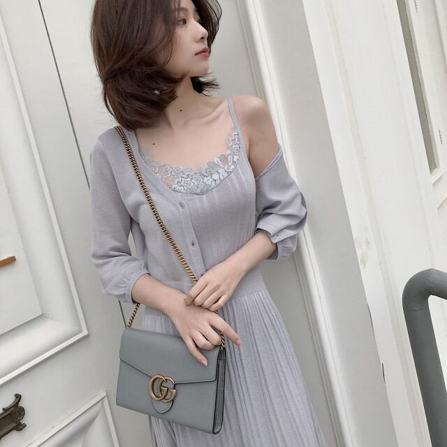 2019年 夏 ニット カーディガン 上品 お洒落 日焼け対策 ドレス ワンピースとセットで ツーピース [A00433]