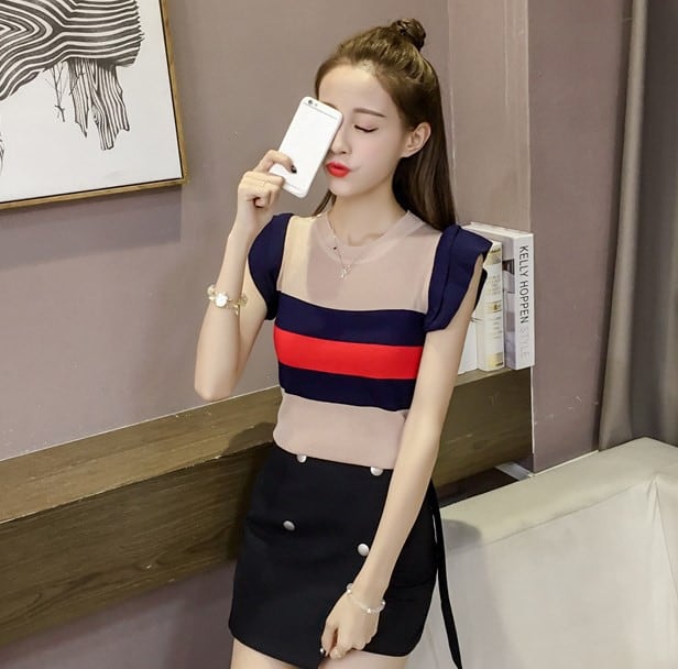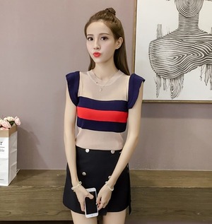 トップス レディース ニット フリル袖 ノースリーブ バイカラー 大人可愛い アプリコット ホワイト ネイビー 全3色 秋 新作 [A00465]