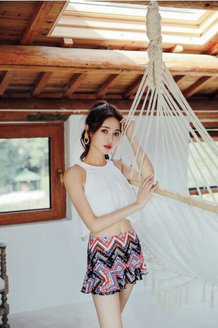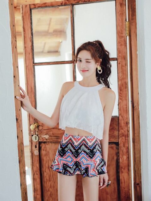 水着 ビキニ タンキニ 2点セット レース フレア ボクサー フリル スカート付 体型カバー ママ 大人可愛い 白 ナイトプール [A00549]