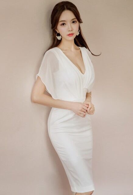シフォンフレアスリーブタイトワンピース 膝丈 白 [A00642]
