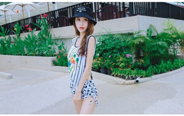 水着 バンドゥ タンキニ 3点セット タンクトップ付 ボクサー 体型カバー ママ サッカー 白黒 スポーティー ナイトプール 夏 [A00659]
