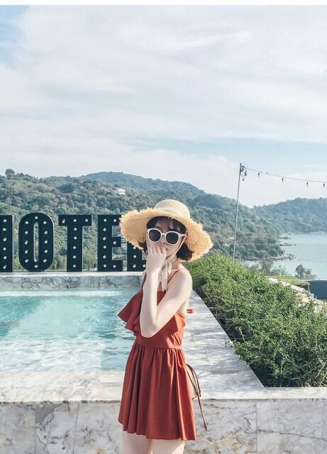 ワンピース水着 レディース フレア フリル ワイヤー ボクサー バックレースアップ 大人ガーリー 茶色 ナイトプール 夏 [A00801]