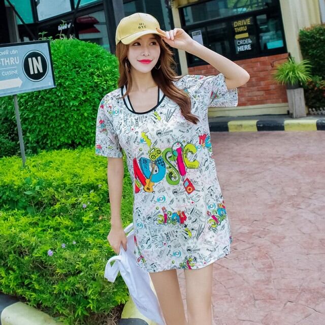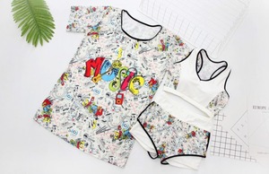 水着 ビキニ コミック柄 Tシャツ付 チュニック 3点セット タンキニ ボクサー スポーティー 体型カバー 白 ナイトプール 夏 [A00848]