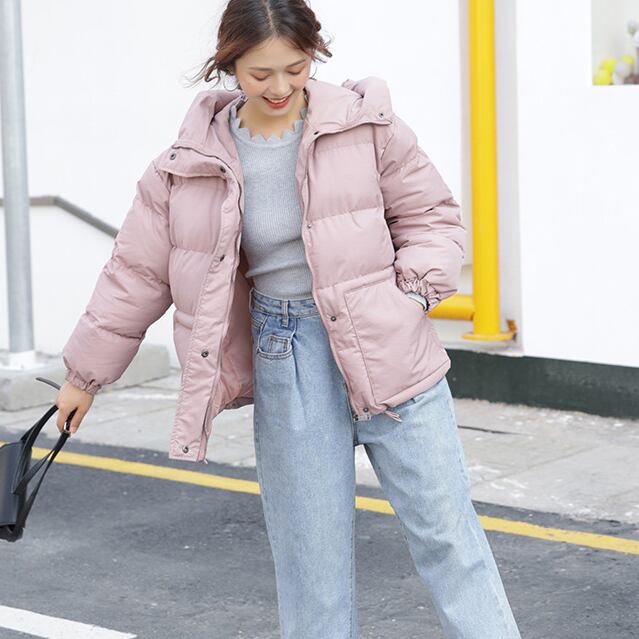ダウンジャケット フード アウター ブルゾン ショート丈 中綿 長袖 カジュアル 防寒 秋物 冬物 通勤 通学 オフィス 無地 可愛い 大人可愛い ナチュラル シンプル 体型カバー [rrn-v0046]