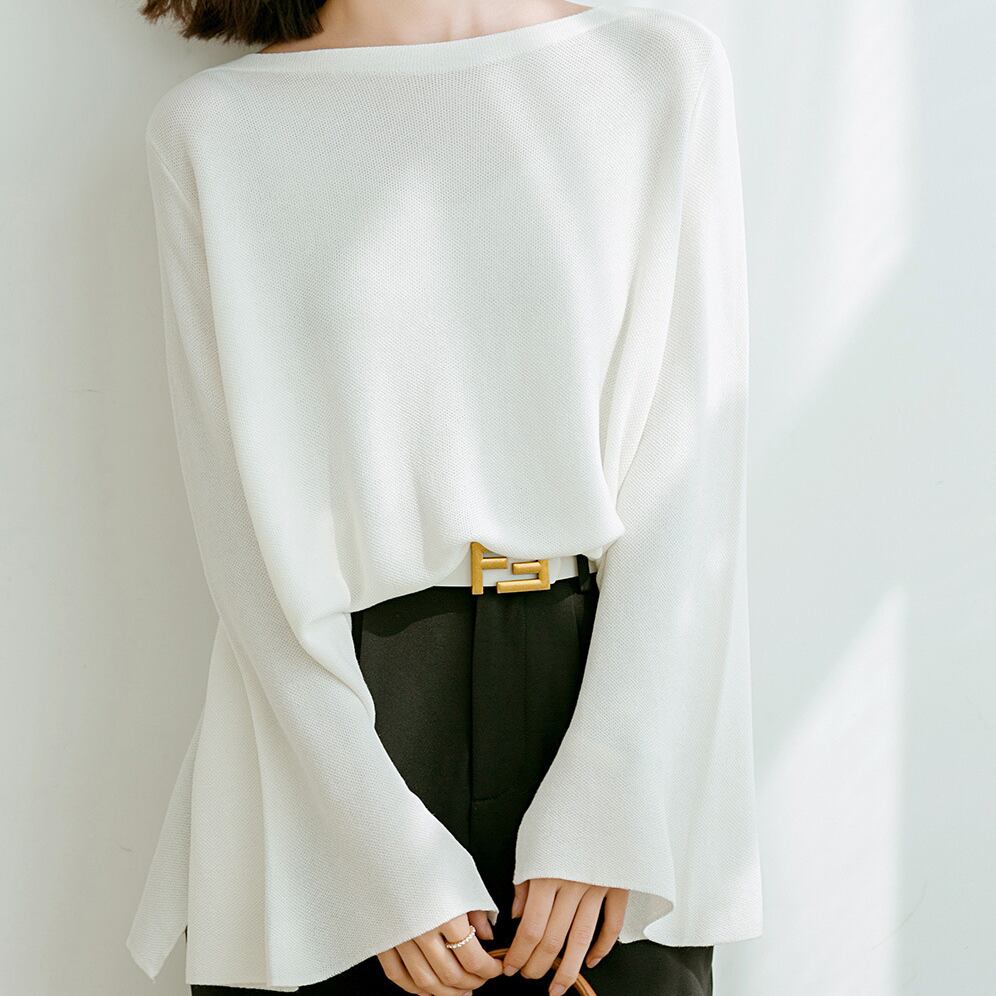 春や秋に活躍するニットのトップス。
