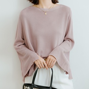 ニット プルオーバー 袖ふわ ラウンドネック トップス ゆったり ゆるカジ 体型カバー 長袖 春 秋 ガーリー 大人可愛い デート シンプル 可愛い オフィスカジュアル オフィス オシャレ 秋物 春物 カジュアル 新作 無地 通勤 通学 [rrn-v0079]