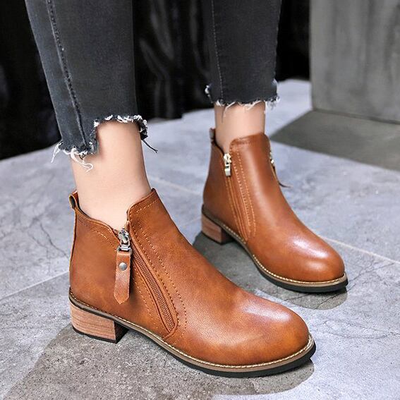 ショートブーツ ローヒール 靴 秋 冬 ハード ブーツ クール シンプル デイリー 可愛い 大人可愛い 贈り物 プレゼント 彼女 通勤 通学 お出かけ 合皮 [rrn-v0089]