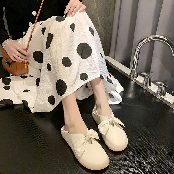リボン パンプス ぺたんこ かかと踏み ローヒール 靴 春 秋 冬 キュート スニーカー フェミニン シンプル デイリー 可愛い 大人可愛い 贈り物 プレゼント 彼女 通勤 通学 お出かけ 楽 合皮 [rrn-v0090]