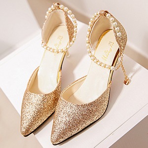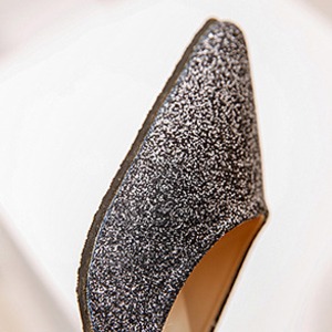 パンプス全体がキラキラしているので、パッと華やかな印象に。