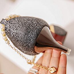 煌びやかなパールやチェーンがお洒落なパンプスです。