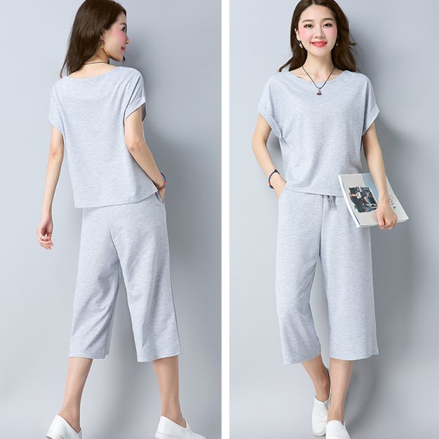 セットアップ アンサンブル上下 半袖 トップス ボトムス パンツ ハーフ 半ズボン 春 夏 無地 可愛い 大人可愛い 体型カバー シンプル カジュアル お出かけ 通勤 通学 ルームウェア 部屋着 ゆるカジ 涼しい インナー 大きいサイズ [rrn-v0152]