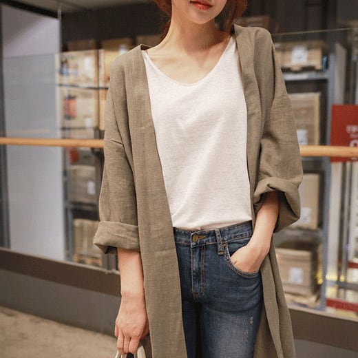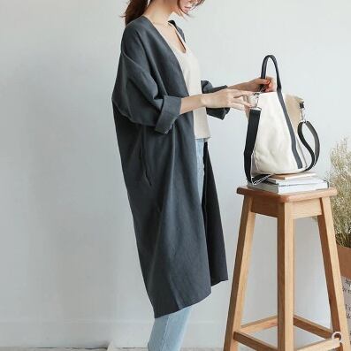 リネン ジャケット ロングジャケット トレンチコート 羽織り 上着 コート レディース 綿麻混 ロング丈 カーディガン 長袖 シック アウター 春 夏 秋 冬 ナチュラル 可愛い 大人可愛い シンプル レジャー お出かけ デート 通勤 通学 買い物 大きいサイズ 無地 体型カバー [rrn-v0160]