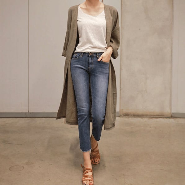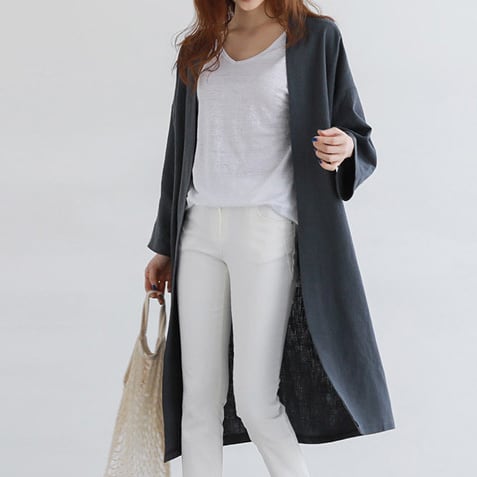 気になる身体のラインをカバーしてくれる、ロングアウターです。