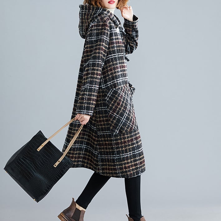 チェック柄 ダッフルコート フード ポケット ジャケット 羽織り ポケット 上着 コート レディース 長袖 シック アウター 秋 冬 ナチュラル 可愛い 大人可愛い シンプル チェック レジャー お出かけ デート 食事会 お呼ばれ オフィス 通勤 通学 買い物 大きいサイズ 柄物 体型カバー [rrn-v0164]